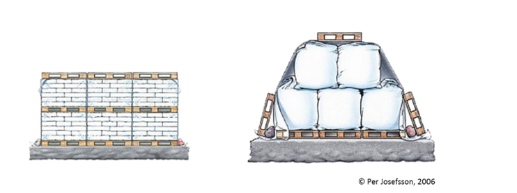 Kako biste očuvali kvalitetu proizvoda, na vrh sloga vreća postavite sloj praznih paleta pa tek nakon toga stavite navlaku: tako ćete izbjeći propadanje proizvoda uslijed izloženosti toplini (sukladno savjetima proizvođača ili dobavljača).